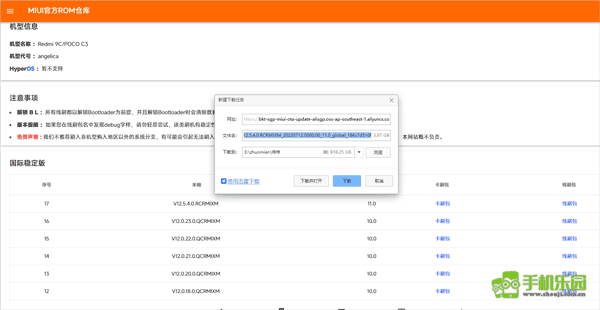 2、访问https://magiskcn.com/roms.html这个网址,找到与手机系统版本相匹配的系统包,然后复制其链接