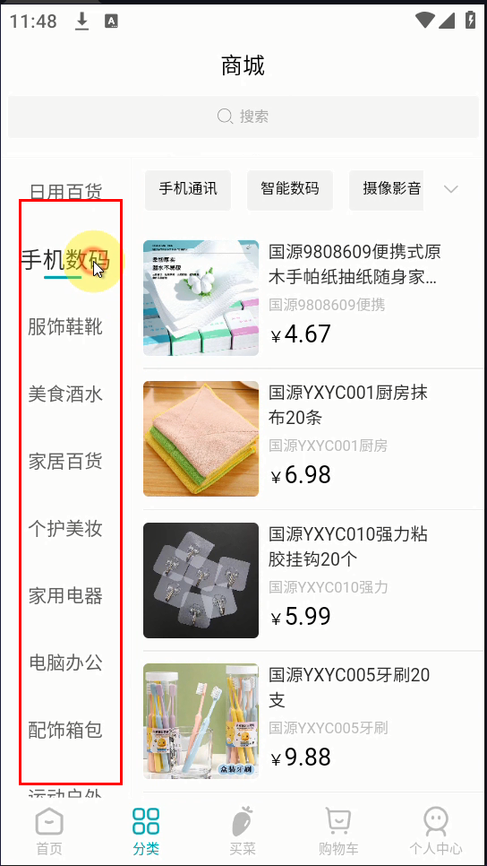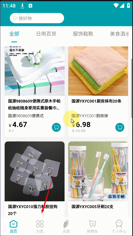 2、在打开的页面中就可以查看各种各样的商品类型了