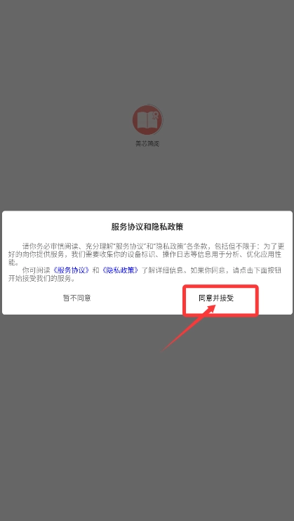 首次使用本应用,请仔细阅读用户协议和隐私条款,确认无误后点击“同意”按钮即可进入应用。