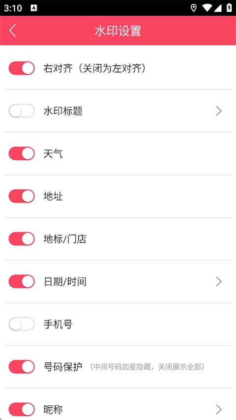 5、您可以自由调整需要显示/隐藏的水印项目;