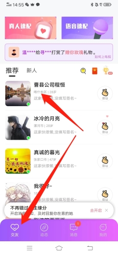 这样我们就成功进入软件了,用户在“交友”页面可以点击感兴趣的人,开启聊天互动。