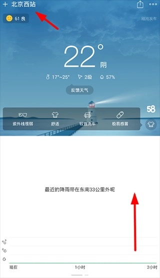 3、如此一来,大家可以从左上角看到自己所在的具体位置,同时也能了解到所在地附近的天气情况,非常的方便实用!