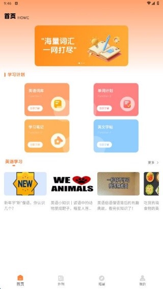 1.在首页之中所有英语的学习板块都展现在你的眼前