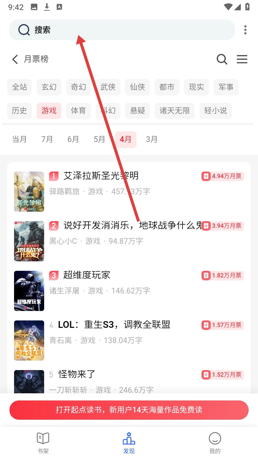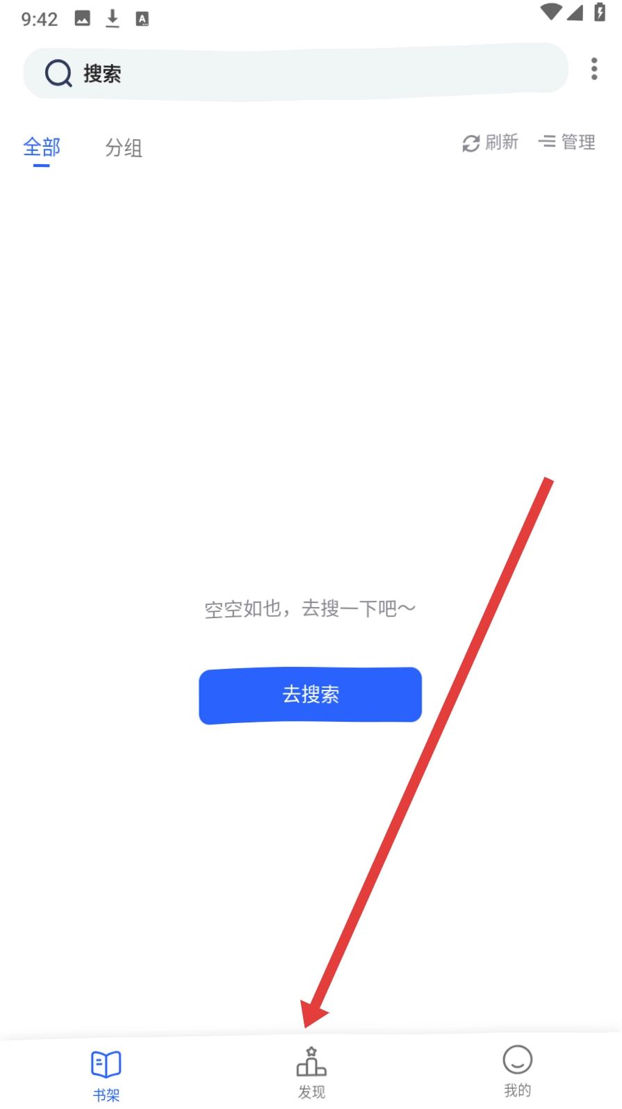 点击底部的【发现】按钮,进入内容探索页面,开启你的书海之旅。