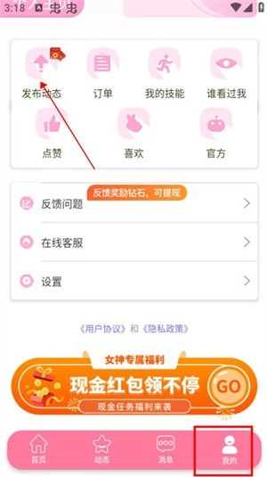 也可以在我的页面直接点击发布动态