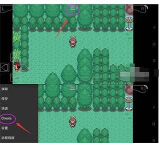 1、启动模拟器并运行游戏后,点击指定图标,选择“Cheats”选项;
