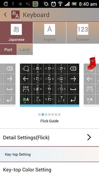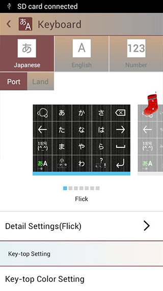 然后我们看到现在的输入方式是“flick”。左右滑动共有七种输入方式可选;