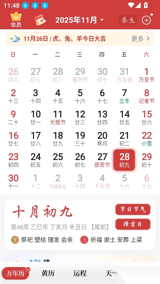 这里还为用户提供了传统经典的黄历信息,对相关的黄历可以随时查看,便捷查看相关的黄历。