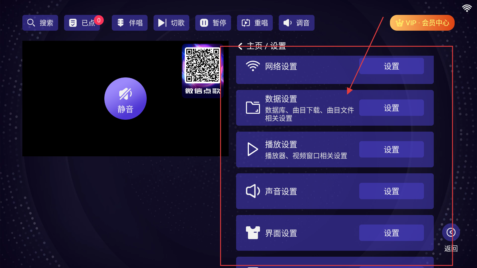 2、进入【设置】页面后,浏览网络设置、数据设置、播放设置等相关选项,然后点击【播放设置】选项进入对应的设置界面。