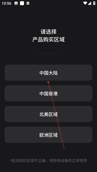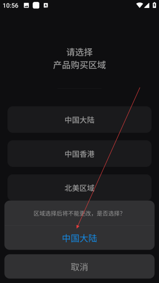 2、弹出确认页面,再次点击【用户地区】。