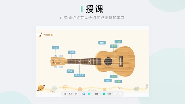 老师在课堂上会结合系统教材内容与课件进行授课,同时还能借助音乐窝智慧电视,通过手机或iPad控制投屏来同步课件,以此丰富课堂互动效果,进一步提升学员的学习兴趣!