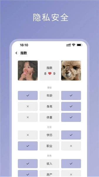 伴侣指数是一款便捷实用的聊天交友软件,能帮你找到许多志同道合的人。既然你是为了结识朋友而来,想认识新朋友的话,现在就别犹豫啦!这款手机软件能让你根据自身需求匹配社交对象,提供全面优质的社交服务,助你认真挑选心仪伴侣,尽享交友乐趣,随时体验便捷互动。它通过多种指数分析匹配来添加恋爱好友,支持精准筛选各类数值选项,帮你快速找到心仪伴侣。平台严格保护用户数据安全,不会泄露重要私密信息,且所有用户均需实名认证注册,杜绝虚假账号。