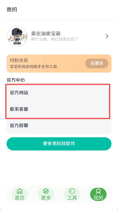 通过“我的”页面,你能够查看软件的官方网站,也可以联系客服人员。