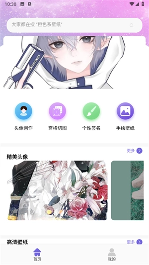 打开软件后进入首页,这里提供头像制作、个性签名等功能。