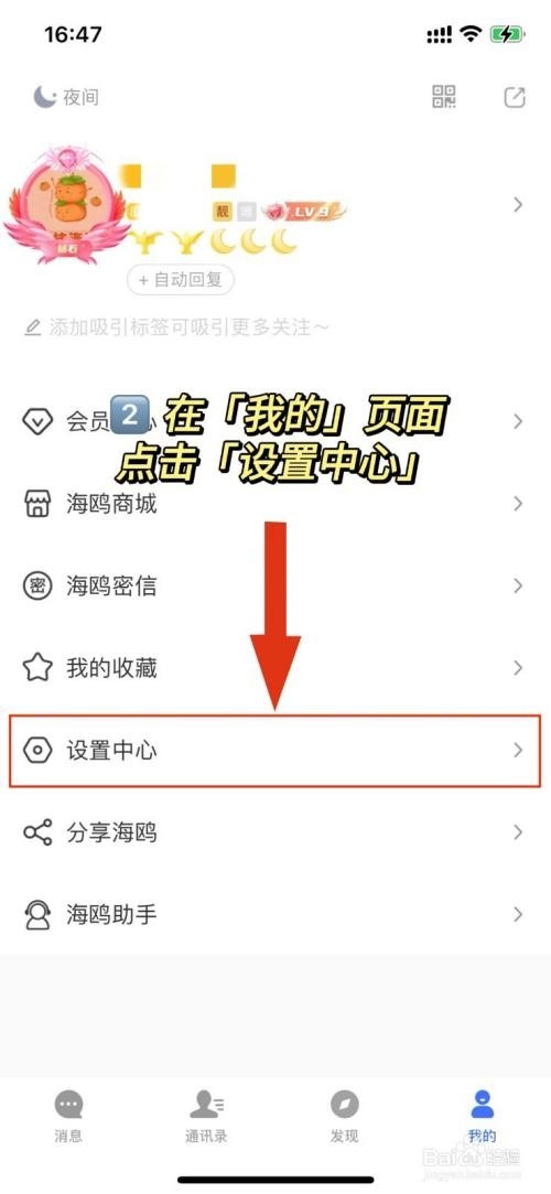 然后我们点击“我的”,会看到“设置中心”;