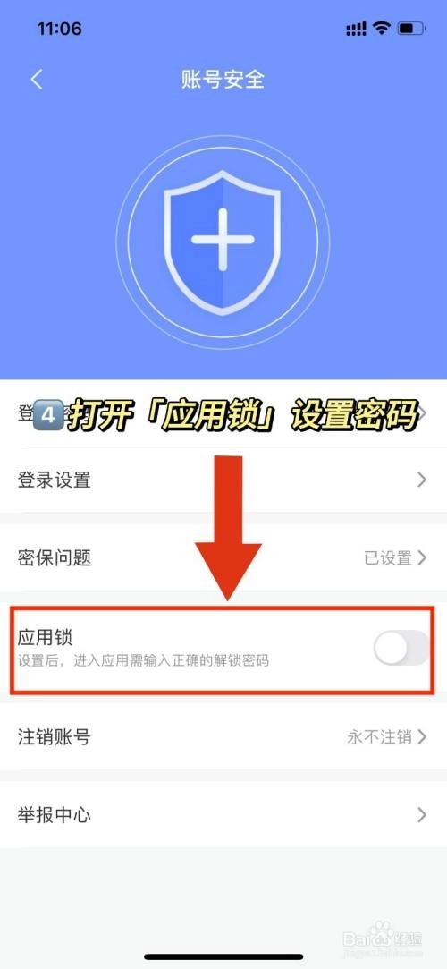我们进入“账号安全”页面后,就能看到“应用锁”这一功能。