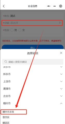 首次登录系统后,系统会提示完善用户信息,此时点击“去完善”按钮,按照实际情况填写各项内容即可,其中分站信息需选择“赣州市本级”。特别提醒:姓名与分站信息在确认保存后将无法更改,请务必核对无误后再点击【确认】按钮。
