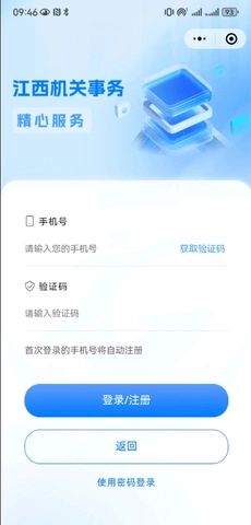 通过微信小程序端进入“江西机关事务”的登录注册页面,输入手机号后,首次登录即会自动完成注册。