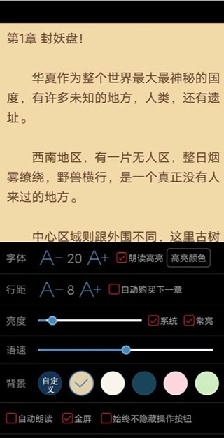 点击“立刻阅读”按钮,就能进入对应的阅读界面,在该界面中你可以自主调整字体大小、行距疏密以及屏幕亮度。