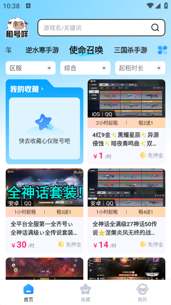《租号咩》是一款面向游戏爱好者的游戏租号软件,旨在搭建安全、便捷且高效的账号租赁平台,帮助玩家轻松获取各类高端游戏账号,丰富游戏体验。软件整合了王者荣耀、和平精英、火影忍者、第五人格、使命召唤等热门游戏的优质账号资源,覆盖不同玩家的需求。平台提供的游戏账号均经过严格筛选与维护,保障账号品质,玩家可依据自身喜好和需求,便捷找到合适的账号进行租赁。