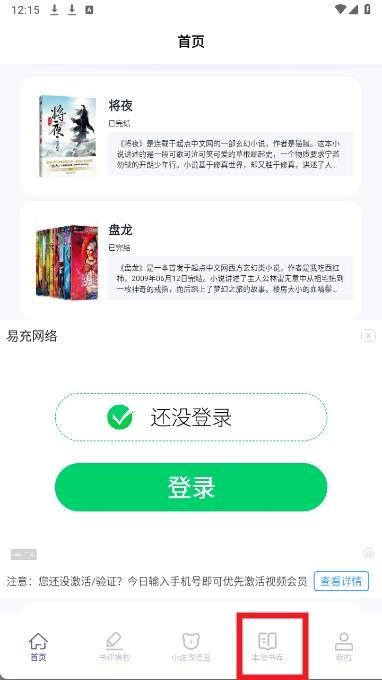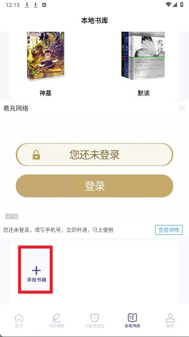 打开授狗阅读应用,进入其首页后,点击“本地书库”选项。