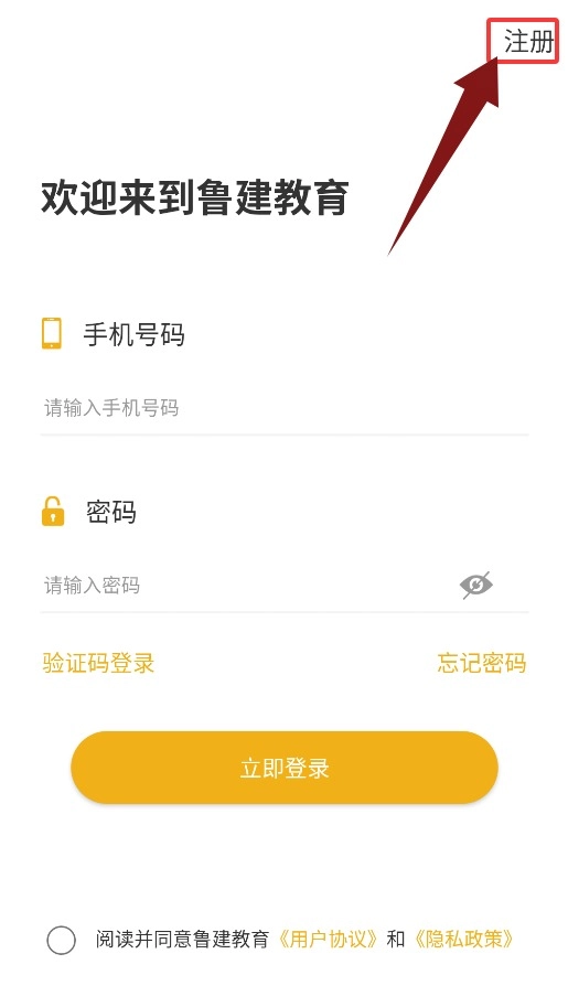 2、在登录页点击右上角注册按钮,即可跳转至账号创建页面。