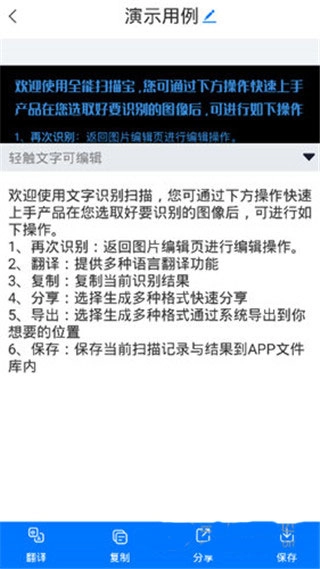 * 能够扫描并识别文件、图片、书籍、名片等各类材料,从中提取所需文字,还可以对识别出的内容进行编辑和复制操作