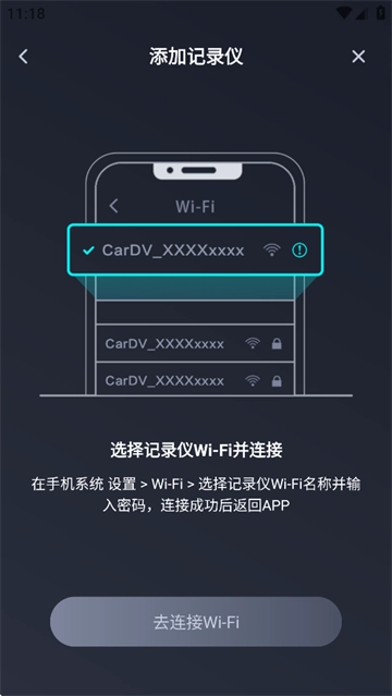 选择记录仪Wi-Fi并连接