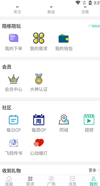接下来点击“我的”,就能看到可以找cp的入口,同时也能查看自己的订单情况。