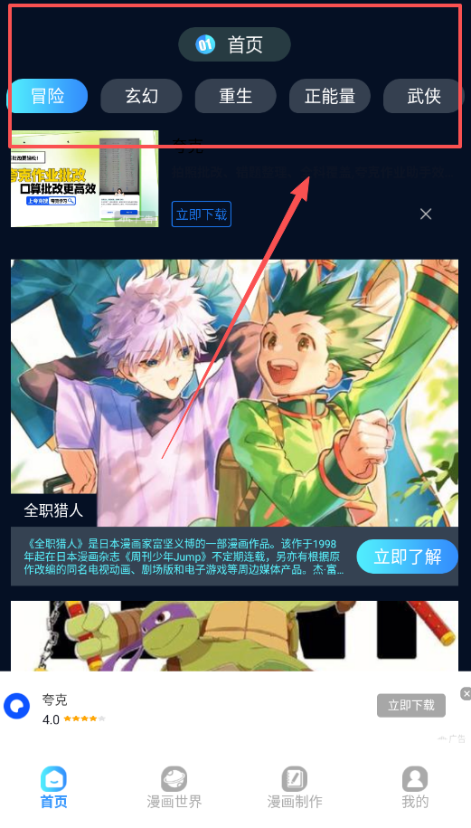 整个应用借助底部导航栏实现互联,你能够随时在首页、漫画世界、漫画制作与我的页面之间跳转,所有核心功能都可快速访问。