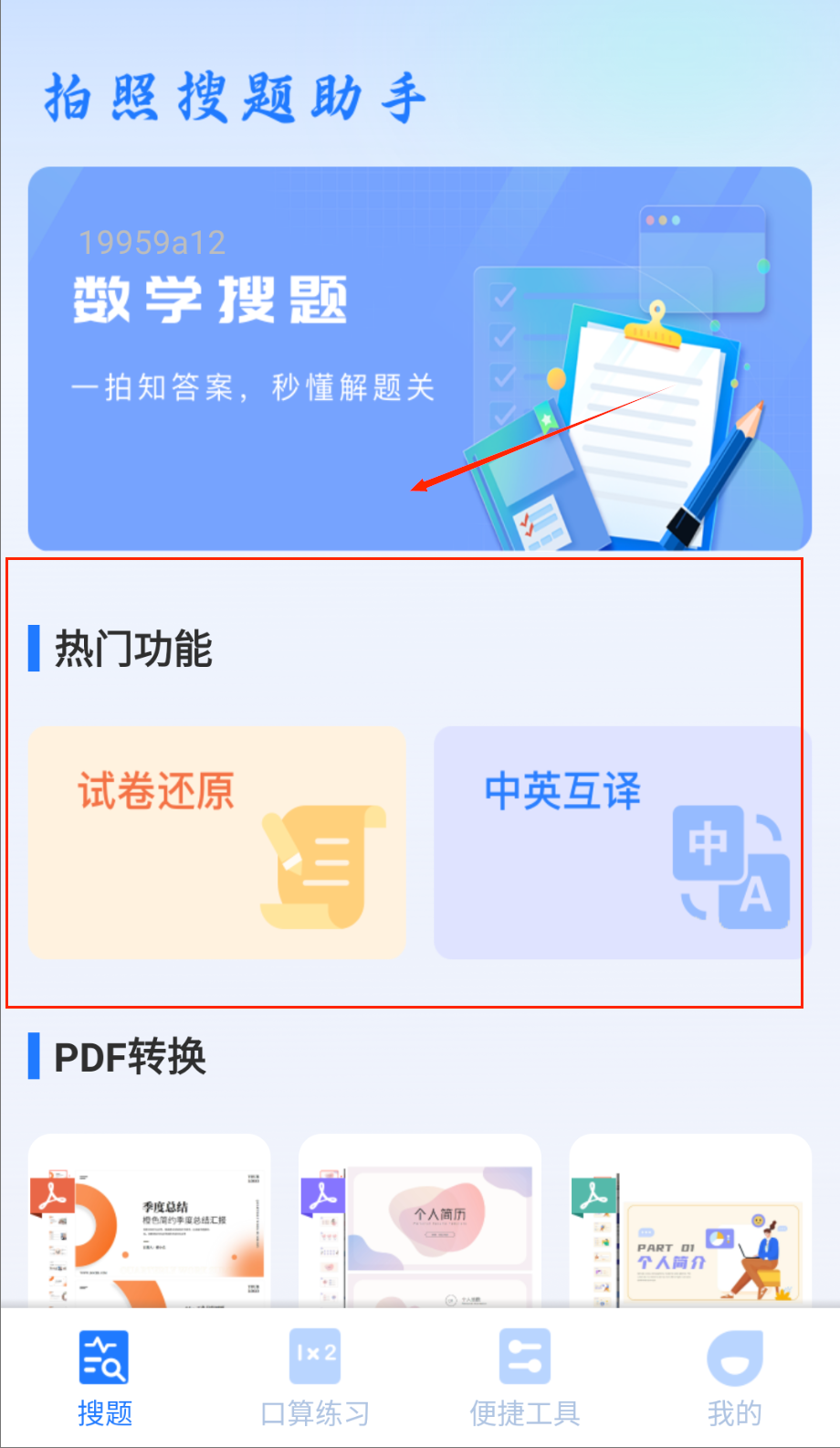 打开拍照搜题功能,对准题目拍一张清晰的照片,然后等系统智能识别就好啦。