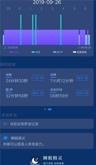 可以实时记录睡眠相关的信息与数据,还能自动生成详细的分析图表,呈现方式简洁直观、易于理解。
