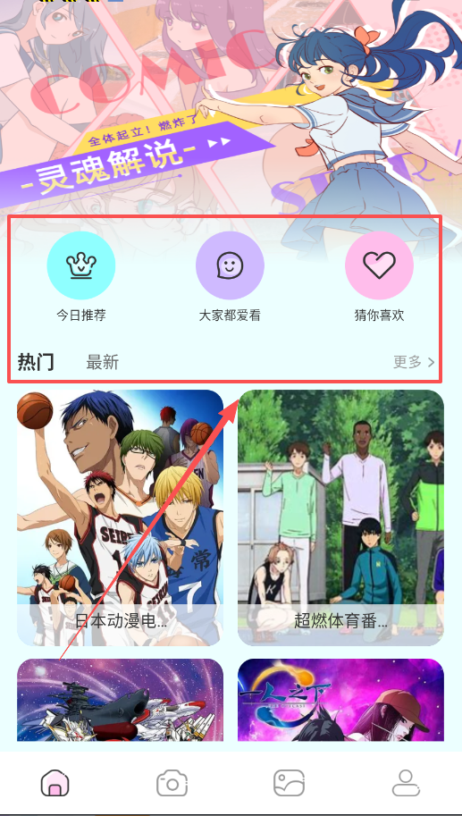 在主界面能够看到今日推荐、大家都爱看以及猜你喜欢之类的栏目,还可以借助热门、最新、更多这些标签来筛选内容。