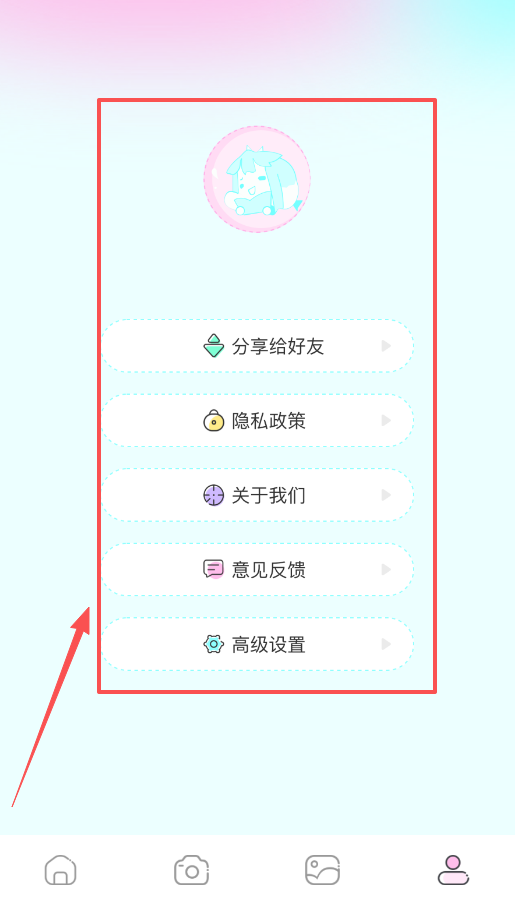 4、个人中心里包含更多设置与帮助选项,点击分享给好友可邀请朋友,查看隐私政策和关于我们能了解软件详情,还能通过意见反馈提交建议。