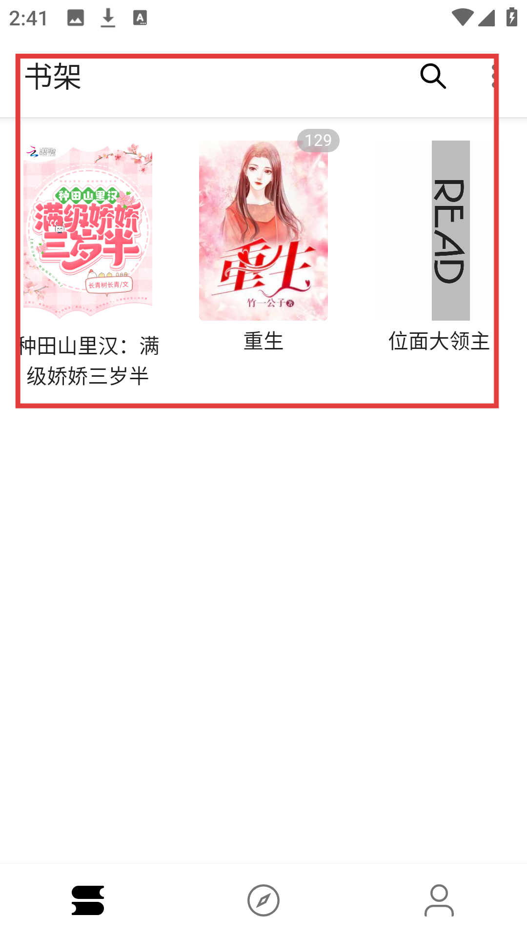 4、书架上能直接看到已加入的小说,像《种田山里汉:满级娇娇三岁半》这类,随时点击就能阅读。