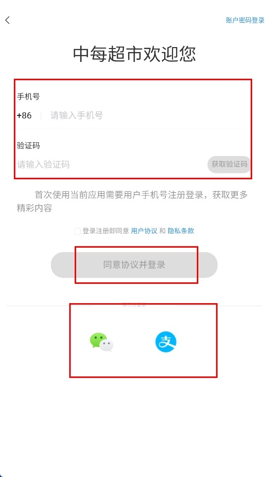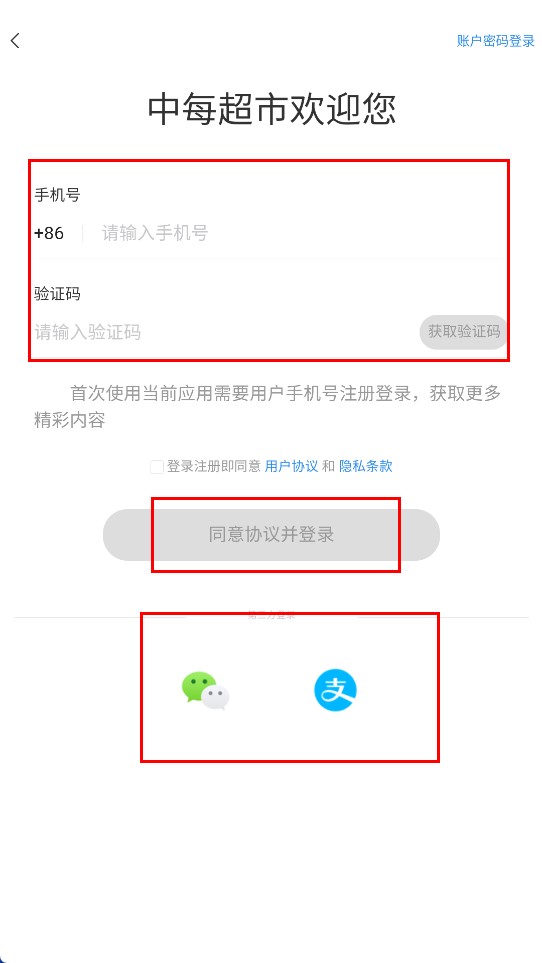 在登录页面,您可以选择输入手机号和验证码,然后点击【同意协议并登录】功能按钮完成登录;此外,也能通过微信或支付宝等第三方登录方式进行操作。