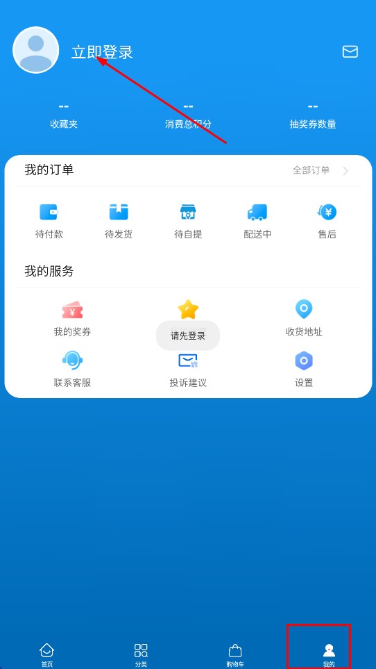 点击页面底部的【我的】功能按钮,接着点击【立即登录】功能按钮,即可进入登录页面。