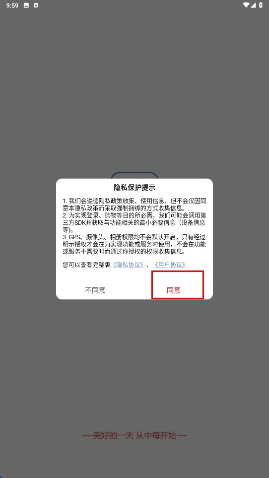 在隐私保护提示弹窗中,点击【同意】功能按钮,即可进入应用页面。