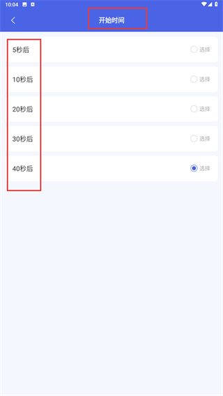 2、进入【开始时间】设置页,选择来电触发的延迟时间(如【40秒后】),完成时间参数的选定。