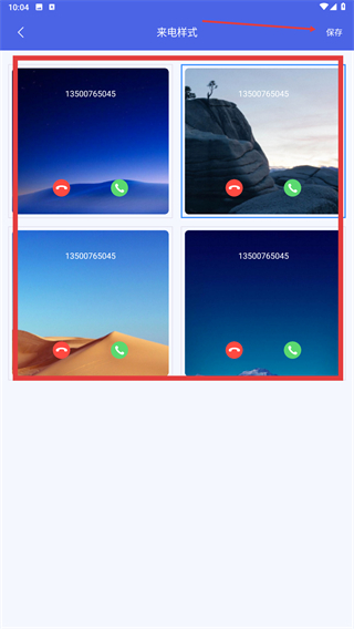 3、进入【来电样式】设置页,挑选目标来电界面样式,点击右上角【保存】按钮,确认样式配置。