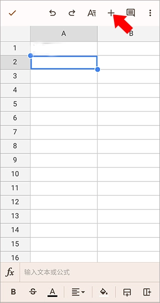 1、我们先选中需要添加图标的单元格,接着点击顶部工具栏上的“+”按钮。