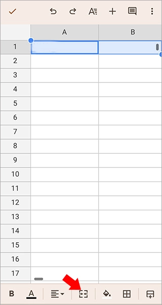 3、随后点击底部工具栏最下方的合并单元格按钮(见下图)。