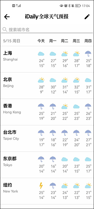 1、打开软件后进入到首页中,点击右上角的天气功能,用户可以在这里随时随地的查看全球各地的天气情况。