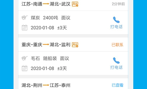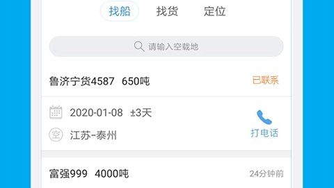 1、找船找货:每天更新海量空船、货源,覆盖长江全线、运河及其它内河,一键拨打电话。