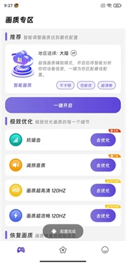 1、启动画质精灵应用,进入主界面后,可选择你希望设置的模式,其中涵盖多种细节优化选项,也支持一键开启功能。我们直接点击“一键开启”按钮,点击后会弹出相应的提示窗口。