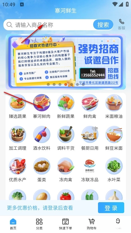 若想快速查找并采购多种商品,也可以点击下方的分类进入分类界面,根据分类直接找到对应的商品进行采购。