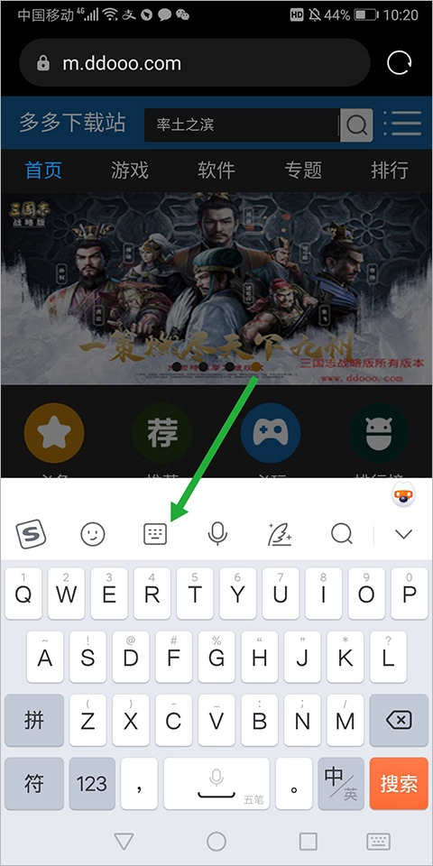 也能在安装完成后,输入文字时直接在键盘上点击键盘图标(下图绿色箭头所指处)