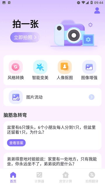 2、进入首页,选择不同的相机模式。