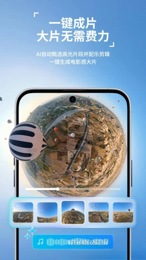 1.AIAI智能剪辑功能,可自动识别拍摄素材里的优质画面并加以选取,只需一键操作就能生成富有电影质感的短片,与此同时,完整的后期手动调整功能也会被保留下来。