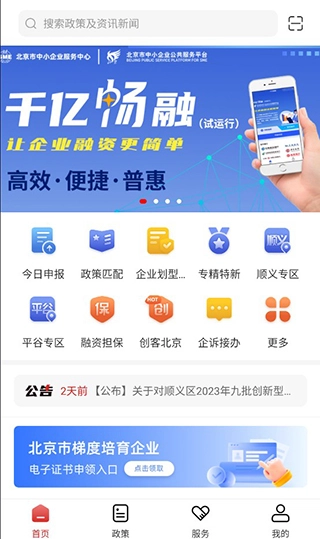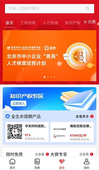 北京通企服版是由北京市经济和信息化局主办、北京市中小企业服务平台(北京国融工发投资管理有限公司)运营的北京企业综合服务平台,同时也是企业申报扶持政策、选购服务产品的移动端入口。该平台可为企业用户提供权威精准、及时有效的政策解读服务,还涵盖工商财税、人力资源、知识产权等中小企业所需的专业化服务产品,助力企业实现快速发展。